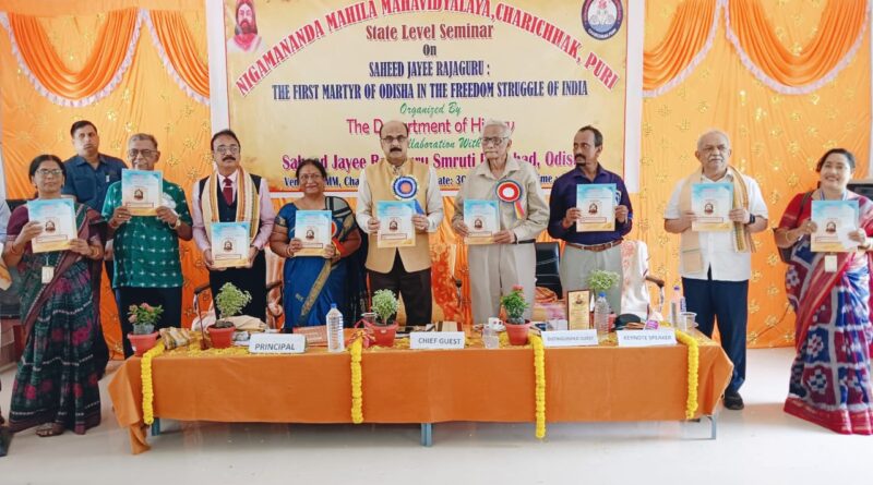ଚାରିଛକ,( ସନ୍ତୋଷ ଦାଶ) ପୁରୀ ଜିଲ୍ଲା ନିମାପଡା ବ୍ଲକ ଅନ୍ତର୍ଗତ ଚାରିଛକ ସ୍ଥିତ ନିଗମାନନ୍ଦ ମହିଳା ମହାବିଦ୍ୟାଳୟ ପରିସରରେ ଇତିହାସ ବିଭାଗ ଏବଂ ସହିଦ ଜୟୀ ରାଜଗୁରୁ ସ୍ମୃତି ପରିସଦ, ଓଡିଶା ଶାଖାର ମିଳିତ ଆନୁକୂଲ୍ୟରେ ” ଓଡିଶାର ପ୍ରଥମ ସହିଦ ଜୟୀ ରାଜଗୁରୁ ” ଶୀର୍ଷକ ରାଜ୍ୟସ୍ତରୀୟ ପାଠଚକ୍ର ଅନୁଷ୍ଠିତ ହୋଇଯାଇଛି। ମହାବିଦ୍ୟାଳୟର ଅଧକ୍ଷା ପ୍ରଫେସର ମିତ୍ରା ମହାପାତ୍ରଙ୍କ ଅଧକ୍ଷତାରେ ଆୟୋଜିତ ପାଠଚକ୍ରରେ ମୁଖ୍ୟ ଅତିଥି ଭାବେ ଓଡିଶା ଉଚ୍ଚ ନ୍ୟାୟାଳୟ ର ନ୍ୟାୟାଧୀଶ ଶଶିକାନ୍ତ ମିଶ୍ର ଯୋଗଦେଇ ସହିଦ୍ ଜୟୀ ରାଜଗୁରୁ ଭାରତୀୟ ସ୍ୱାଧୀନତା ସଂଗ୍ରାମରେ ଓଡିଶାର ପ୍ରଥମ ସହିଦ ଏବଂ ତାଙ୍କ ଉପରେ ଅଧିକ ଗବେଷଣାର ଆବଶ୍ୟକତା ରହିଛି ବୋଲି କହିଥିଲେ । ବିଶିଷ୍ଟ ବକ୍ତା ଭାବେ ଜୟଦେବ କଲେଜ, ନହରକଣ୍ଟାର ପ୍ରାକ୍ତନ ଅଧକ୍ଷ ଡକ୍ଟର ସନ୍ତୋଷ ସେଠୀ, ବିଶିଷ୍ଟ ଅତିଥି ଭାବେ ଗଙ୍ଗାଧର ମେହେର କଲେଜର ପ୍ରାକ୍ତନ ପ୍ରଫେସର ଡକ୍ଟର ନାରାୟଣ  ରାଓ, ସହିଦ ଜୟୀ ରାଜଗୁରୁ ସ୍ମୃତି କମିଟିର ସମ୍ପାଦକ ଡକ୍ଟର ଜଟାଧାରୀ ମିଶ୍ର, ମଙ୍ଗଳା ମହାବିଦ୍ୟାଳୟର ପ୍ରାକ୍ତନ ଅଧ୍ୟକ୍ଷ ତଥା ନିଗମାନନ୍ଦ ମହିଳା ମହାବିଦ୍ୟାଳୟର ପୂର୍ବତନ ପରିଚାଳନା କମିଟି ସଭାପତି, ଡକ୍ଟର ପ୍ରସନ୍ନ କୁମାର ଜେନା, ମହେନ୍ଦ୍ର ପ୍ରଧାନ, ସୌମ୍ୟ ରଞ୍ଜନ ଦଳାଇ, ପ୍ରାକ୍ତନ ଅଧ୍ୟକ୍ଷ ପ୍ରଫେସର ଗୋପୀନାଥ କର, ଡକ୍ଟର ପ୍ରଭାତ ଚନ୍ଦ୍ର ମିଶ୍ର ପ୍ରମୁଖ ଯୋଗ ଦେଇଥିଲେ । ଅଧ୍ୟକ୍ଷା ଶ୍ରୀମତୀ ମହାପାତ୍ର ସ୍ୱାଗତ ଭାଷଣ ଦେଇ ଥିବାବେଳେ ମେଜର ପୁଷ୍ପଲତା ଦତ୍ତ ଅତିଥି ପରିଚୟ ପ୍ରଦାନ କରିଥିଲେ ।ସଂସ୍କୃତ ଅଧ୍ୟାପକ ଜୀବନ ଦାଶ ମଞ୍ଚ ପରିଚାଳନା କରିଥିବା ବେଳେ ରାଜନୀତି ବିଜ୍ଞାନ ବିଭାଗ ଅଧ୍ୟାପିକା ଡକ୍ଟର କିର୍ତ୍ତୀମୟୀ ରାଉତରାୟ କାର୍ଯ୍ୟକ୍ରମ ସଂଯୋଜନା କରିଥିଲେ । ଅତିଥିମାନେ ବିଭାଗୀୟ ମୁଖପତ୍ରର ଶୁଭ ଉନ୍ମୋଚନ କରି ଥିଲେ।ବିଭିନ୍ନ ମହାବିଦ୍ୟାଳୟରୁ ଆସିଥିବା ଅଧ୍ୟାପକ,  ଅଧ୍ୟାପିକା ଏବଂ ଛାତ୍ରୀମାନେ ତାଙ୍କର ସନ୍ଦର୍ଭ ପାଠ କରିଥିଲେ ।ସନ୍ଦର୍ଭ ପାଠ କରିଥିବା ସମସ୍ତ ଅଧ୍ୟାପକ, ଅଧ୍ୟାପିକା ଏବଂ ଛାତ୍ରୀମାନଙ୍କୁ ମାନପତ୍ର ପ୍ରଦାନ ପୂର୍ବକ ପୁରସ୍କାର ପ୍ରଦାନ କରାଯାଇଥିଲା। ପରିଶେଷରେ ବିଭାଗୀୟ ଅଧ୍ୟାପିକା ସୁଲୋଚନା ସାହୁ ଧନ୍ୟବାଦ ଅର୍ପଣ କରିଥିଲେ ।