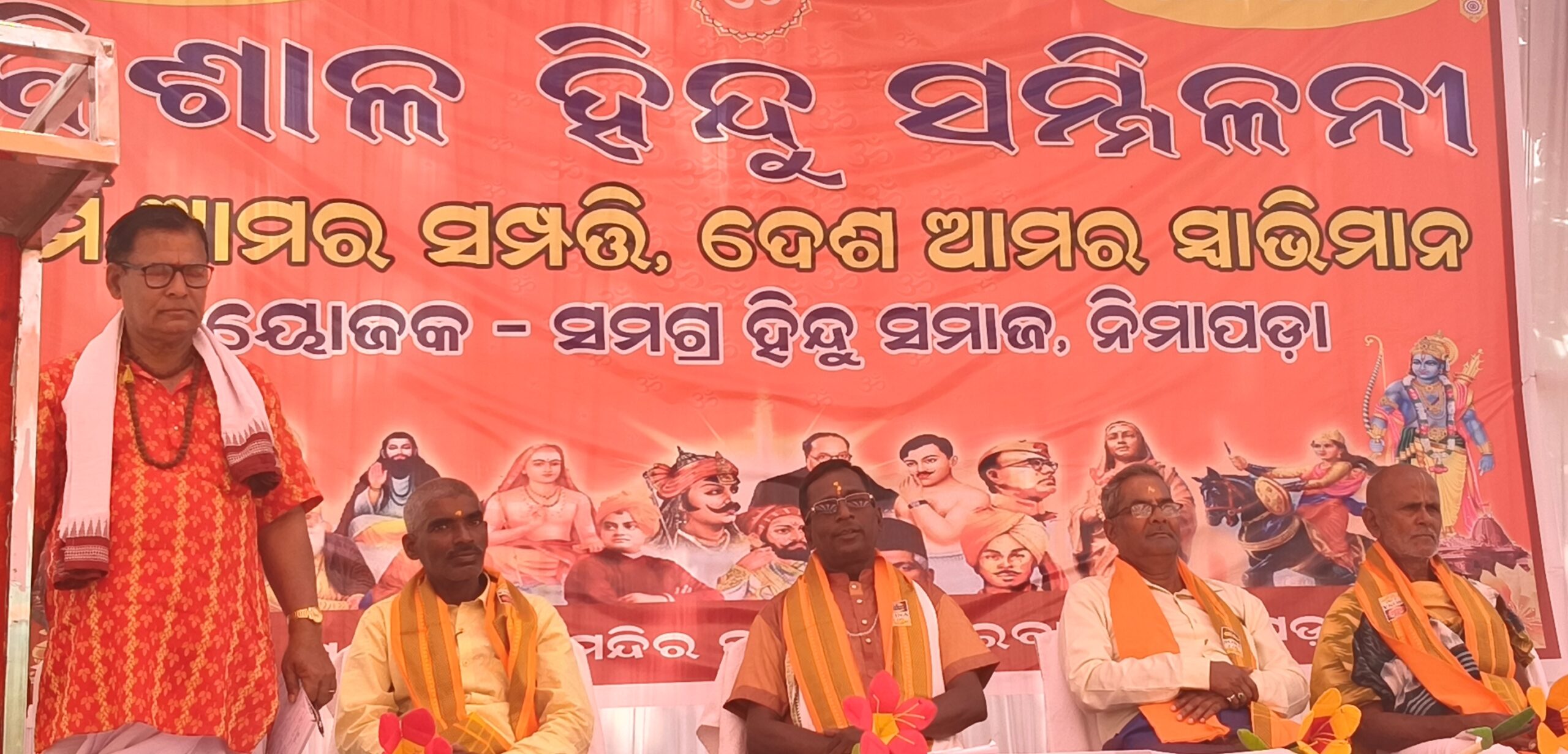 ନିମାପଡ଼ା, (ଏ.ପି ନ୍ୟିୁଜ) ଆଜି ପୂର୍ଣ୍ଣେଶ୍ବରୀ  ମଣ୍ଡପ ସମ୍ମଖ  ପଡ଼ିଆରେ ବିଶାଳ ହିନ୍ଦୁ ସମ୍ମିଳନୀ ଆଜି ଅନୁଷ୍ଠିତ ହୋଇଯାଇଛି।  ରାଷ୍ଟ୍ରିୟ ସ୍ବୟଂସେବକ  ସଂଘର ସଂଚାଳକ ଅମୂଲ୍ୟ ପ୍ରସାଦ ଦାଶ ଙ୍କ ସଭାପତିତ୍ବରେ ଅନୁଷ୍ଠିତ ହିନ୍ଦୁ ସମ୍ମିଳନୀରେ  ବହୁ ସାଧୁସନ୍ଥ, ମହନ୍ତ ମାନେ ଯୋଗଦେଇ ହିନ୍ଦୁ ଆମର ଧର୍ମ  ସମ୍ପତି ଦେଶ ଆମର ସମ୍ପତି ଓ ସ୍ବାଭିମାନ। ସାଧୁସନ୍ଥମାନେ  ହିନ୍ଦୁମାନଙ୍କ   ଏକାଠି ରହିବାକୁ ଆହ୍ପାନ ଦେଇଥିଲେ।।  ବିଦେଶୀ ଶକ୍ତି ମାନେ ଭାରତକୁ  ଭାଙ୍ଗିବାକୁ  ଉଦ୍ୟମ ଜାରି ରହିଛି ଏହାକୁ   ପ୍ରତ୍ୟେକ ହିନ୍ଦୁ  ଏହାର ପ୍ରତିହିତ କରିବାସହ ଜାଗ୍ରତ ରହିବାକୁ ପରାମର୍ଶ ଦେଇଥିଲେ। ଏହି ହିନ୍ଦୁ ସମ୍ମିଳନୀରେ ବିଶ୍ବହିନ୍ଦୁ ପରିଷଦର ବ୍ଲକ ସଂଯୋଜକ  ଶ୍ରୀମନ୍ତ ଶେଖର ରଥ, ସଂଯୋଜନରେ ଅନୁଷ୍ଠିତ ଏହି ସମ୍ମିଳନୀରେ ମୁଖ୍ୟ ବକ୍ତାରୁପେ  ସାକ୍ଷୀଗୋପାଳ  ଗେଶାଳାର ପ୍ରମୁଖ ପ୍ରଭାତ କୁମାର ମହାପାତ୍ର,   ଗ୍ରାମ୍ୟ ସେବା ବିଭାଗର ସଂପାଦକ  କୈଳାସ ଚନ୍ଦ୍ର ମହାପାତ୍ର ସମ୍ମାନ୍ନିତ ଅତିଥିଭାବେ  ବିଶ୍ବ ହିନ୍ଦୁ ପରିଷଦର ରାଜ୍ୟ ସହ ସଂପାଦକ ଉମାଶଙ୍କର ଆଚାର୍ଯ୍ୟ, ଖଣ୍ଡ କାର୍ଯ୍ୟ ନିର୍ବାହକ ଭାଗୀରଥି ଓଝା, ରଜଂନ ନାୟକ, ପ୍ରେମାନନ୍ଦ ପାତ୍ର, ମଠ ମହନ୍ତ ଜଗନ୍ନାଥ ଦାସ, ଲିଙ୍ଗରାଜ ଦାସ ଏବଂ ଜ୍ୟୋତି ରଂଜନ ଛୋଟରାୟ ଯୋଗଦେଇ ଥିଲେ।। ଏହି ଅବସରରେ ପ୍ରାତଃ ରେ ହରିହାଟ ପରେ ନଗର କୀର୍ତ୍ତନ କରାଯାଇଥିଲା । ସମ୍ମିଳନୀ ଅବସରରେ  ପୁରୁଣା ବସଷ୍ଟାଣ୍ଡ ର ମହାବୀର ମନ୍ଦିର ଠାରୁ ପୁର୍ଣ୍ଣେଶ୍ବରୀ  ମନ୍ଦିର ପର୍ଯ୍ୟନ୍ତ ନଗର କୀର୍ତ୍ତନ ସହ ବିଶାଳ  ଶୋଭାଯାତ୍ରା ଆୟୋଜିତ ହୋଇଥିଲା ଶହଶହ ମହିଳା ଯୋଗ ଦେଇଥିଲେ।